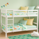Cada cama incluye su somier con 15 lamas de madera contrachapada, que proporcionan una óptima ventilación del colchón y un soporte firme para un descanso confortable. Está preparada para colchones de 90 x 190 cm, una medida estándar que se adapta fácilmente a diferentes tipos de colchón y estilos de dormitorio.