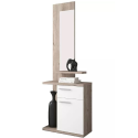Fabricado en melamina laminada de primera calidad, garantiza resistencia, durabilidad y un mantenimiento sencillo en el día a día. Su amplia capacidad de almacenaje permite organizar cómodamente objetos de uso diario como llaves, carteras, correspondencia o pequeños complementos, manteniendo el orden en zonas de paso. El espejo mural no solo resulta práctico, sino que además amplía visualmente el espacio, ideal para entradas o pasillos de dimensiones reducidas.