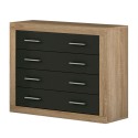 La cómoda Lara es una cómoda de tamaño intermedio con 4 cajones con discretos y tiradores horizontales y frontales que contrastan con el resto del mueble. Esta cómoda se adapta a distintos estilos: dormitorios adultos, dormitorios infantiles o dormitorios juveniles. Es un mueble resistente, fuerte e higiénico gracias a que está elaborado en melamina de alta calidad (15 mm de grosor), un material sintético 100% no poroso que previene el desarrollo de bacterias y que es muy fácil de limpiar.