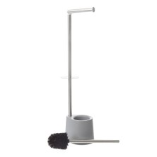 Portarrollos y escobillero de acero inoxidable con escobilla y base de plástico.
